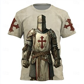 Hombre Caballeros templarios Camiseta Manga Corta Camiseta Impresión 3D Cuello Barco Camisa Religioso Calle Casual Diario Marrón claro Marrón Verano Primavera Todas las Temporadas Ropa S M L XL XXL