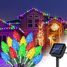 Cadena de luces LED solares para exteriores, impermeables, 12 m, 100 LED&Cadena de luces LED de 7 m y 50 led para jardín navideño& fiesta