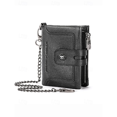 Cartera de cuero genuino para hombre con bloqueo RFID, cadena, forro de cepillo antirrobo, monedero plegable resistente al desgaste para viajes, trabajo y uso diario.