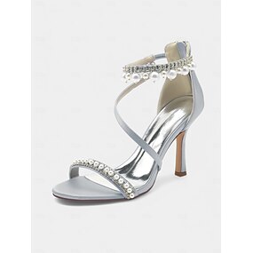 Sandalias de tacón alto con tiras en el tobillo y perlas blancas: glamorosos tacones de aguja para novias y fiestas de graduación para mujeres