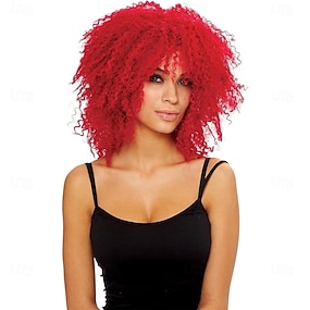 Peluca de carnaval 2026 Rojo Azul Morado Rizado Corta Peluca sintética para festival Carnaval Desfile Cabello para disfraz de cosplay para Mujer