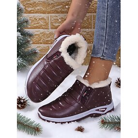 Botas de nieve impermeables color burdeos para mujer con forro de piel sintética: botines cálidos para exteriores en invierno.