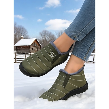 Botas de nieve impermeables de invierno para mujer, color caqui, con forro de piel: zapatos cálidos con cordones para exteriores, ideales para climas fríos y viajes de esquí.