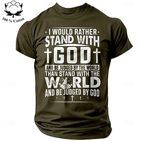 Camisa Gráfica de Fe para Hombre - Párate con Dios Camiseta Cristiana Religiosa | Ropa Espiritual de Estilo de Vida 100% Algodón Manga Corta