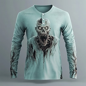 Camisa Henley de zombis para hombres manga larga moda linda casual diaria vacaciones otoño primavera y otoño verde camiseta Henley