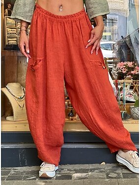 Mujer Lino de algodón sintético Pantalones Pantalones de verano Pololos Vacaciones Moda Básico Longitud total Media cintura Plano Bolsillo Cintura elástica Perneras anchas Comodidad Al Aire Libre