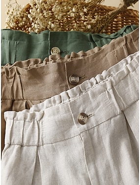 Mujer Pantalones Capri Lino de algodón sintético Perneras anchas Chinos Vacaciones Moda Ropa de calle Medio corto Alta cintura Plano Cintura elástica Confortable Comodidad Suave Elástico Exterior