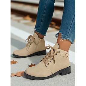 Botas de combate con cordones beige para mujer: botines de piel sintética y lona con suela gruesa para senderismo, aventuras al aire libre, viajes y ropa urbana informal.