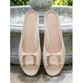 Sandalias blancas de piel sintética para mujer con hebilla dorada, estilo informal, ideales para paseos por el jardín, vacaciones y recados diarios.