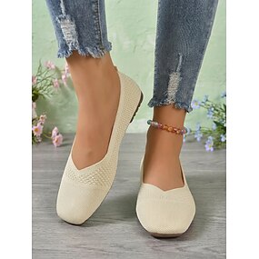 Zapatillas Flyknit sin cordones para mujer: zapatos planos informales, ligeros y transpirables para caminar, ir de compras y usar en vacaciones.