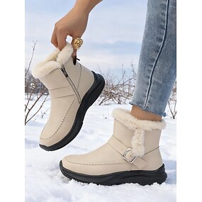 Botas de nieve de invierno beige para mujer: cálidas botas de senderismo para exteriores con forro polar y correas de velcro para clima frío, excursiones de esquí y trekking.
