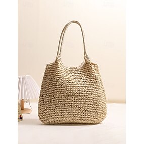 Bolso tote grande tejido para mujer, material de ganchillo, disponible en blanco roto y caqui, diseño espacioso, perfecto para el uso diario informal y las vacaciones en la playa.