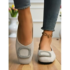 Bailarinas con hebilla de diamantes de imitación rojos para mujer: elegantes zapatos sin cordones con punta redonda para uso oficial, diario y fiestas de té por la tarde.