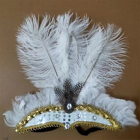 Carnaval 2026 Accesorios Samba del Carnaval de Río Diadema de Showgirl de Plumas de Avestruz Blanca - Diadema de Cristales y Piedras - Accesorio de Vestuario Burlesque Gatsby para Festival de Brasil
