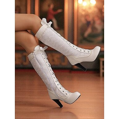 Botas blancas de tacón cuadrado hasta la rodilla para mujer: botas largas retro elegantes para fiestas, disfraces y conjuntos de invierno con estilo.