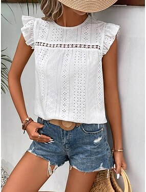 Mujer Tops de encaje Graphic Geométrico Elegante Sin Mangas Escote en Pico Tops regulares Casual Diario Fin de semana Blanco Verano Primavera