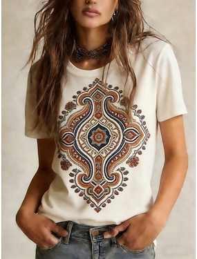Mujer Camiseta Camiseta superior Estampado Graphic Geométrico Bohemia Elegante Clásico Manga Corta Cuello Barco Escote Redondo Tops regulares Diario Noche Fin de semana Blanco Verano Primavera