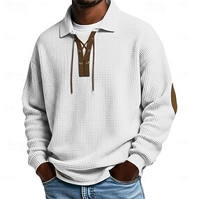 Hombre Camisetas polo con diseño de gofre Camisetas polo Casual Calle Diseño Manga Larga Básico Moderno Plano Acordonado Primavera Otoño Ajuste regular Negro Blanco Verde Claro Vino Azul Marino Morado