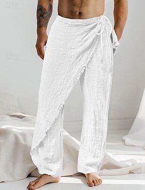 Hombre Pantalones de lino Pantalones Pantalones de verano Pantalones anchos Pantalones de playa Correa Botón lateral Pierna recta Plano Comodidad Transpirable Longitud total Casual Diario Festivos