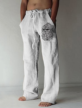 Hombre Pantalones de lino Pantalones Pantalones de verano Pantalones de playa Correa Bordado Bolsillo Plano Comodidad Transpirable Vacaciones Diario Festivos Hawaiano Boho Negro Blanco