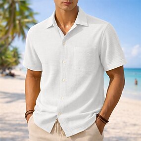 Hombre Camisa de lino de algodón Camisa de algodón blanca Camisa de verano Camisa casual Camisa Cubana Plano Vacaciones Maldición Negro Blanco Azul Marino Caqui Manga Corta Diseño Primavera verano