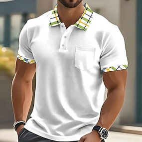 Hombre Camiseta de golf Camisetas polo piqué Casual Negocio Clásico Manga Corta Moda Básico Color sólido Plaid Botones Verano Primavera Primavera & Otoño Ajuste regular Blanco Amarillo Azul Marino