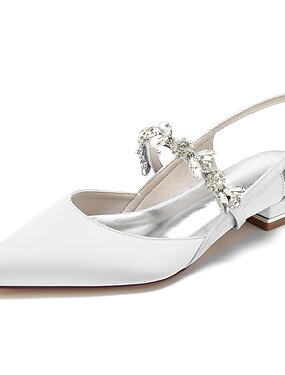 Elegantes zapatos de novia para bodas en jardines y ayuntamientos, zapatos de novia blancos de punta con tira de cristal.