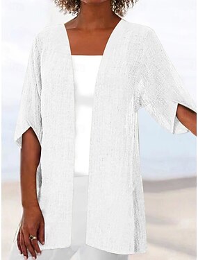 Mujer Chaqueta casual Transpirable Cómodo De Gran Tamaño Casual Plano Casual Ropa Cotidiana Frente Abierto Regular Sin Cuello Ajuste regular Media Manga Ropa de calle Negro Blanco Rosa Verano