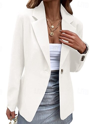 Mujer chaqueta Trabajo Botón Color sólido Transpirable Estilo de Oficina Ajuste regular Ropa de calle Manga Larga Otoño Blanco S