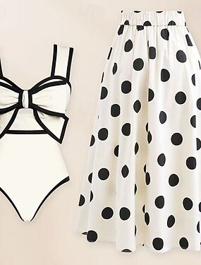 Bañador de una pieza para mujer monokini con falda control de abdomen cintura alta esbelto sin espalda ropa de playa para vacaciones lunares escote en V sin mangas