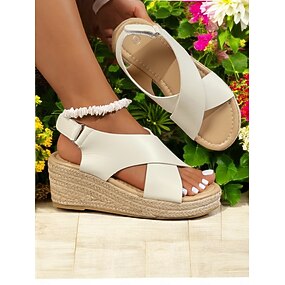 Sandalias de cuña para mujer con hebilla de pedrería naranja, sandalias de verano con tira ajustable, calzado casual cómodo de punta abierta para uso diario y viajes. &paseo por el jardín
