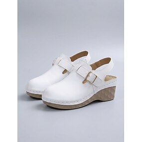Mules perforados sin cordones para mujer: zapatos blancos de piel sintética con tacón cómodo para uso diario, salidas informales y un estilo relajado de verano.