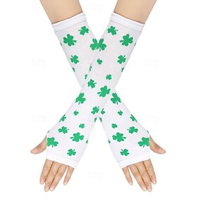 Guantes de punto para mujer para el Día de San Patricio, con rayas verdes y blancas y estampado de trébol, perfectos para el Día de San Patricio, Carnaval y uso diario.