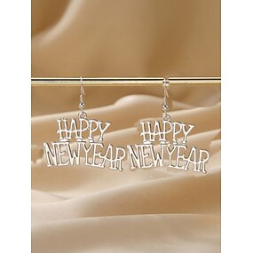 Elegantes pendientes de aleación para mujer con letras de Feliz Año Nuevo: perfectos para fiestas de Nochevieja