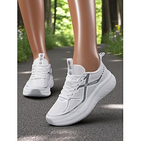 Zapatillas de running de malla para mujer: zapatillas ligeras y transpirables con cordones para correr en el parque y entrenar.