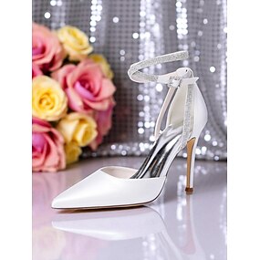 Zapatos de tacón de aguja con punta puntiaguda de satén morado para mujer con correa de tobillo con diamantes de imitación: glamurosos zapatos de vestir de tacón alto para damas, ideales para cócteles