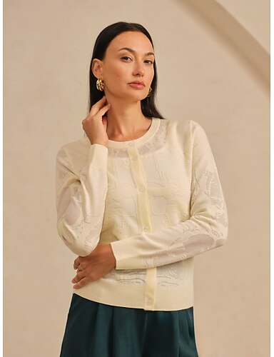 Cárdigan de punto floral de organza de lana, estilo informal vacacional