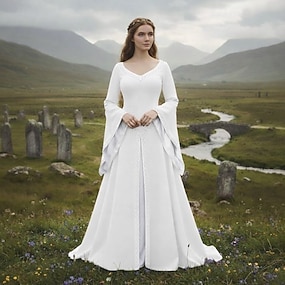 Retro Antiguo Medieval Renacimiento Mediodía Vestidos Campana Vikingo caballero celta élfico Hombros Caídos Inspirado en la Regencia Disfraz Mujer Celta Fantasía Víspera de Todos los Santos Carnaval