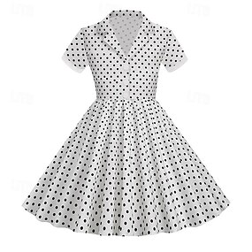 Retro Antiguo 1950s Un vestido de línea Vestido swing A Lunares Disfraz Mujer Vestido llamativo Año Nuevo Adultos Vestido