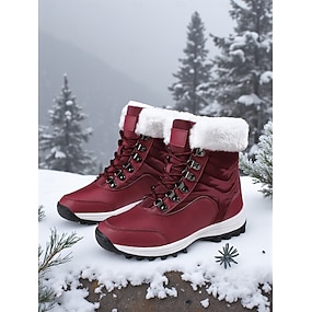 Botas de nieve impermeables de invierno para mujer, color burdeos, con forro de piel sintética, con cordones, para senderismo al aire libre, cálidas, para clima frío.