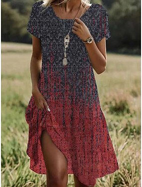 Vestido Midi de Mujer Vestido en A Vestido de Camiseta Vestido Tipo T Vestido Deportivo Casual Vacaciones Diarias Ajuste Regular Gráfico Manga Corta Cuello Redondo Rojo Oscuro Rosa Rojo Burdeos Verano