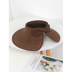 Sombrero de paja con ala ancha para mujer, plegable, abierto en la parte superior, varios colores, ligero, ideal para playa, viajes, uso casual, vacaciones y actividades al aire libre.