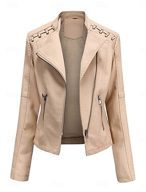 Mujer Chaqueta de cuero sintético Chaqueta de motociclista Exterior Calle Ropa Cotidiana Otoño Invierno Corto Abrigo Ajuste regular Mantiene abrigado Transpirable Elegante Casual Chaquetas Manga Larga
