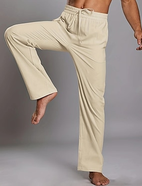Hombre Pantalones de lino Pantalones Pantalones de verano Pantalones de playa Correa Plano Comodidad Transpirable Longitud total Casual Yoga Fin de semana Ropa de calle Delgado Azul Piscina Negro