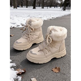 Botas de combate con forro de piel color caqui para mujer, botas de invierno informales cálidas con suela antideslizante, calzado acogedor para exteriores para clima frío y viajes.