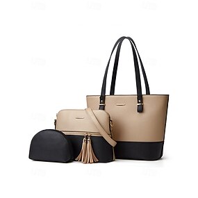 Elegante conjunto de bolso de mano de patchwork de dos tonos para mujer con decoración de borlas: bolso de mano, bolso bandolera y bolso pequeño, perfecto para el ocio diario y para ir al trabajo