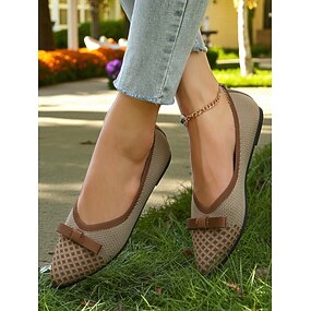Bailarinas con lazo Flyknit para mujer: zapatos casuales elegantes, ligeros y transpirables para uso diario, paseos al aire libre en el parque y picnics primaverales en el jardín.