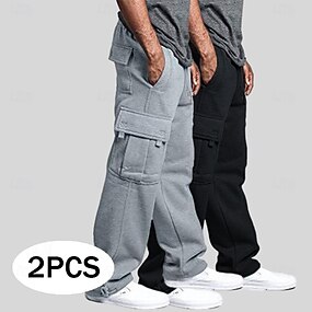 Hombre Pantalones de Deporte Persona que practica jogging Pantalones Pantalones deportivos tipo cargo Pantalones casuales Cintura elástica Correa Multi bolsillo Color sólido Comodidad Longitud total