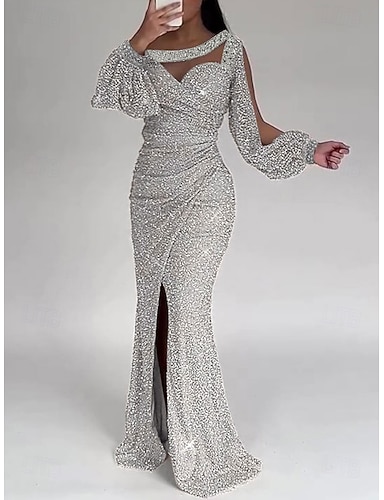 Funda / Columna Cola de Corte Trajes de gala Vestidos de noche Corte Cenicienta Vestimenta formal Elegante Reluciente Estilo de Celebridad Manga Larga Un Hombro Formal Boda Terciopelo Crepé elástico