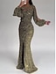 Corte Trompeta / Sirena Cola de Corte Trajes de gala Vestidos de noche Corte Cenicienta Vestimenta formal Fiesta Manga Larga Camiseta con cuello redondo Formal Lentejuelas con Brillante Fruncido